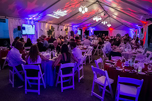 Lighting can make or break your event experience. If the lights are too bright your event will be stark and cold. If your lights are too dark guests will miss important elements of your event and design. Well placed lights can create ambiance at your event. Great lighting will allow you to get more impact from key components such as floral arrangements and other decor. You can also use lighting to grab your guests' attention or direct their focus to events going on within your event.